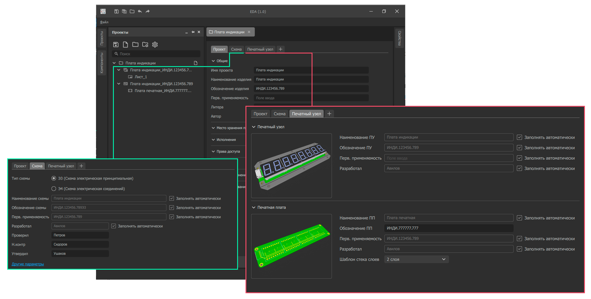 соответствии с ЕСКД, а основные атрибуты автоматически синхронизируются с картой проекта.