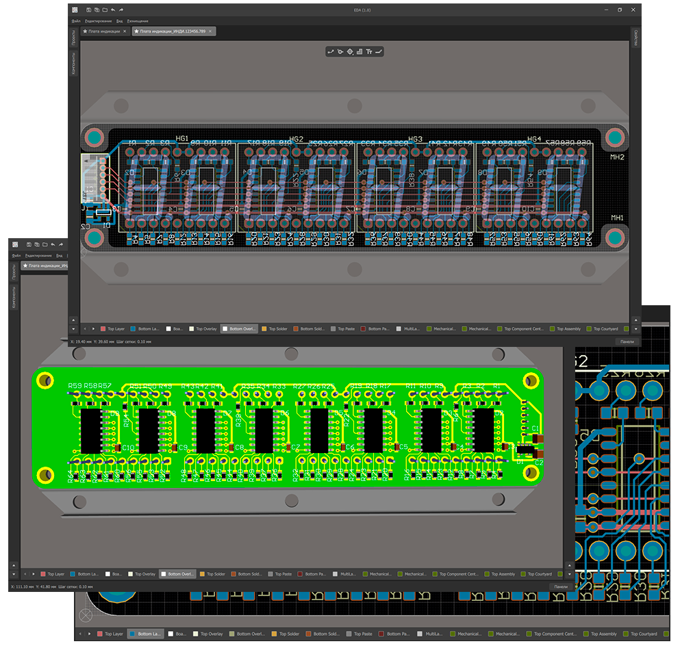Полноценный трехмерный режим работы с компонентами и топологией позволяет визуально оценивать